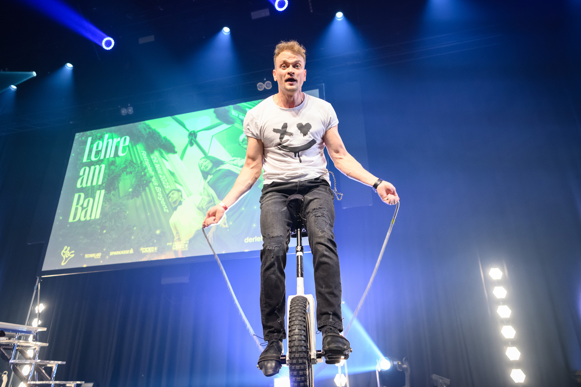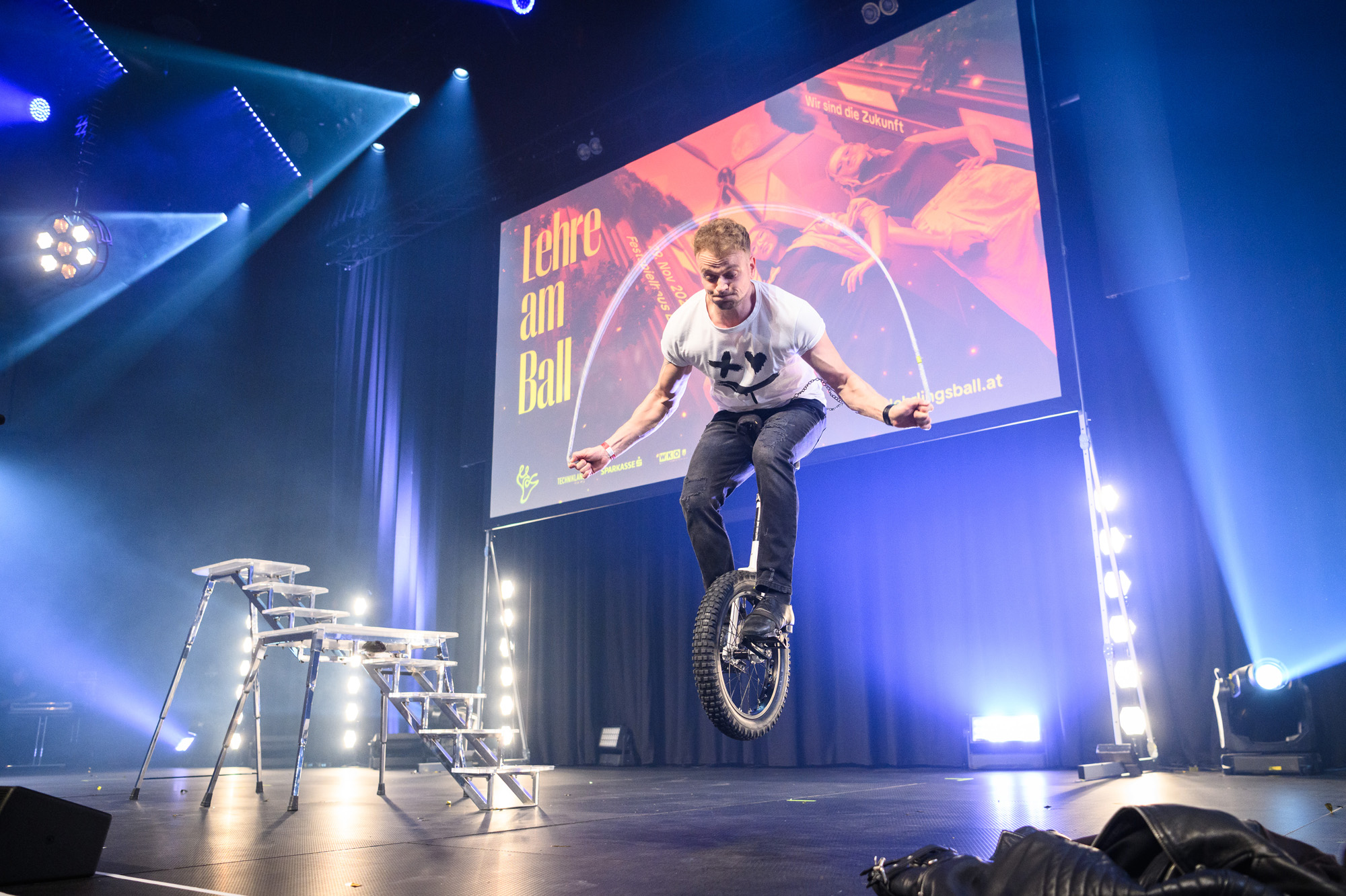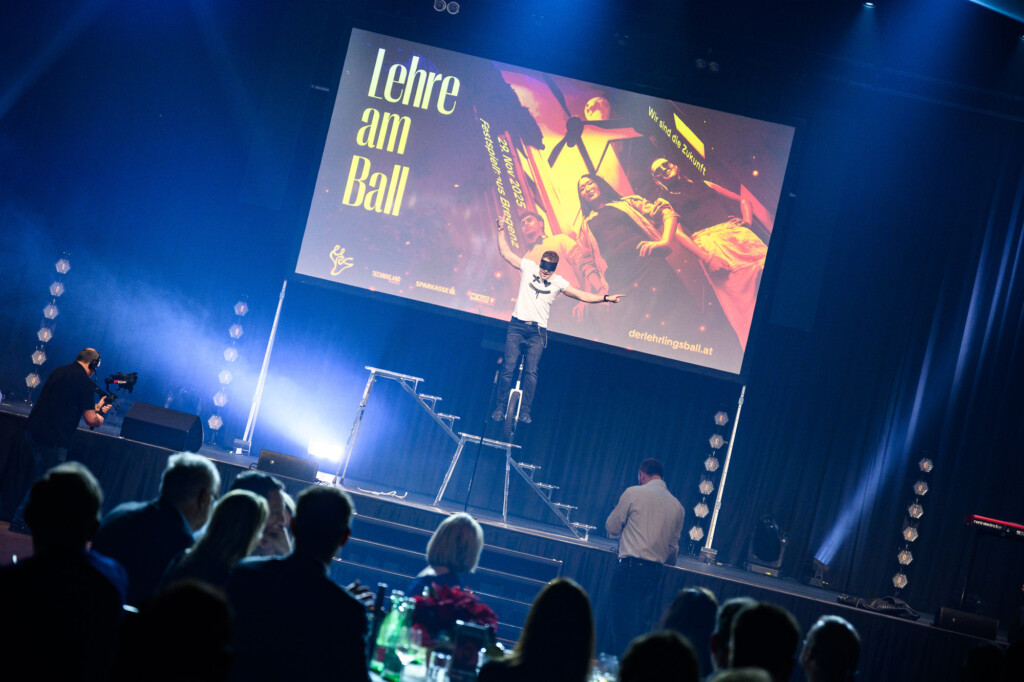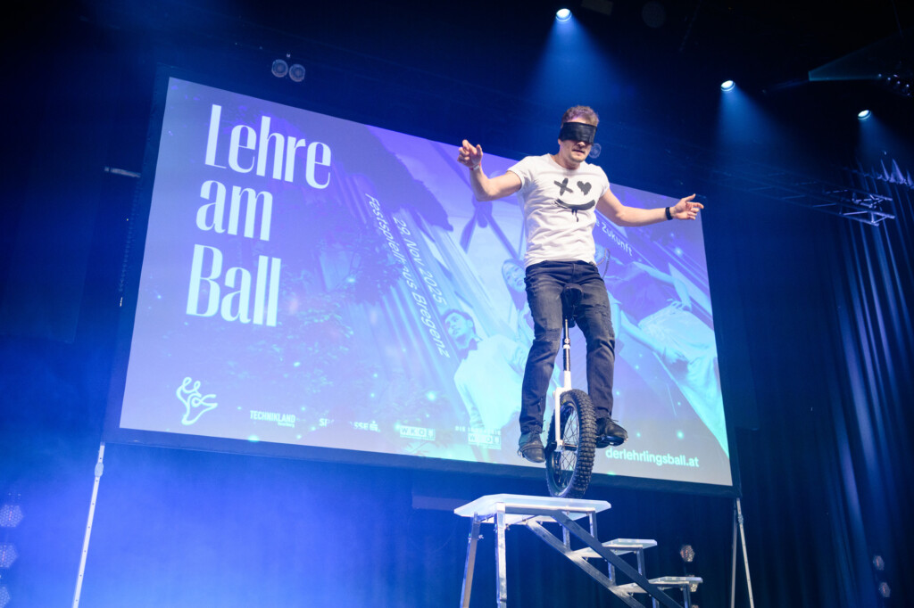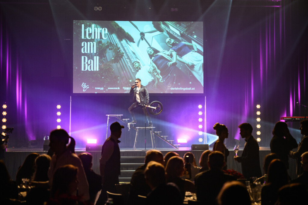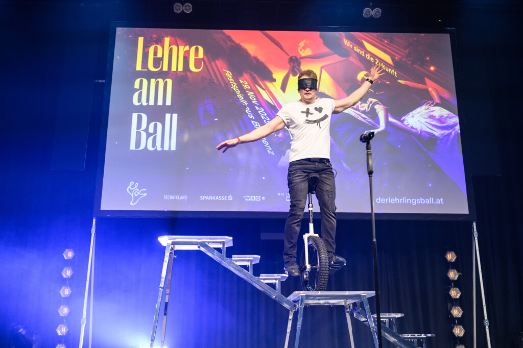 Genau dieser Geist prägte den gesamten Lehrlingsball 2025. Die Acts spiegelten diese Energie wider: Dustin Waree zeigte in zwei spektakulären Shows, wie Mut und Vielseitigkeit neue Wege eröffnen – als Akrobat, singender Einradfahrer und Beatboxer.